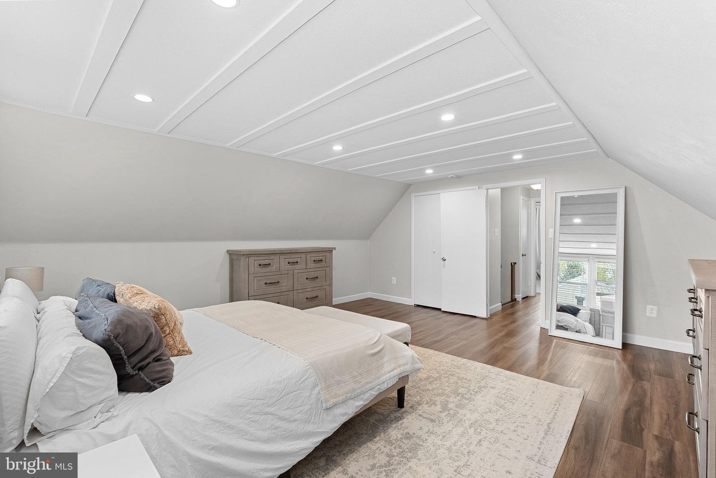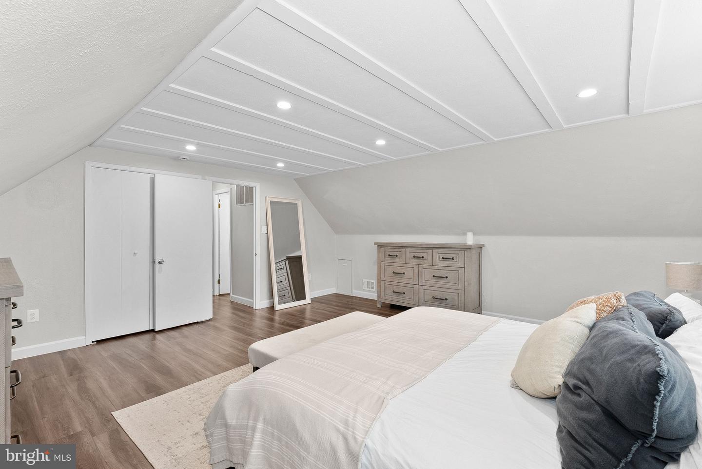 Also on the main level are two bedrooms and a shared full bathroom as well as a separate coat and storage closets. The layout of the home offers fully main level living if desired; however, upstairs there are two more sizeable bedrooms and a beautifully updated full bath. The spacious bedroom upstairs has room to add a walk-in closet if desired.