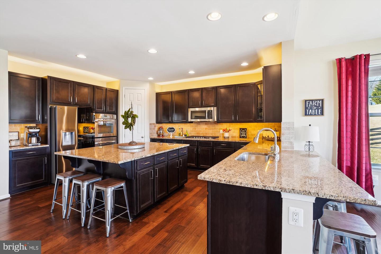 Welcome to this stunning five-bedroom home located on the sought-after DC side of Warrenton, where charm and elegance greet you from the moment you step onto the wrap-around stamped concrete front porch. The main level features an open layout highlighted by a gourmet kitchen with a large island and a butler's pantry, perfect for entertaining. A cozy office space complements the living area, which boasts a gas fireplace and beautiful hardwood floors that elevate the home's sophistication. Upstairs, the expansive primary bedroom serves as a private retreat, complete with bathroom featuring a soaking tub, double vanities, and a generous walk-in closet, alongside three additional spacious bedrooms and a convenient laundry room. The finished walk-out basement adds even more appeal with an additional bedroom, full bath, recreation room with a bar, and a theater room--ideal for relaxation and entertainment. Outside, the backyard is an outdoor oasis with a deck leading to a large patio, with outdoor kitchen bar with granite countertop perfect for gatherings, all within a fenced yard. This elegant home seamlessly blends style, comfort, and functionality, making it an exceptional choice for anyone seeking the best in Warrenton living. Roof and water heater approximately 1 year.